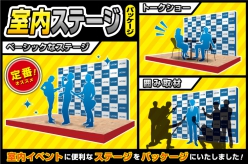 コンパクトに室内設置できるステージをパッケージ化。 バックパネルのデザインはお客様のご要望に応じて制作することができます。舞台・トークショー・記者会見など、さまざまなイベントに対応できますので、お気軽にご相談ください!